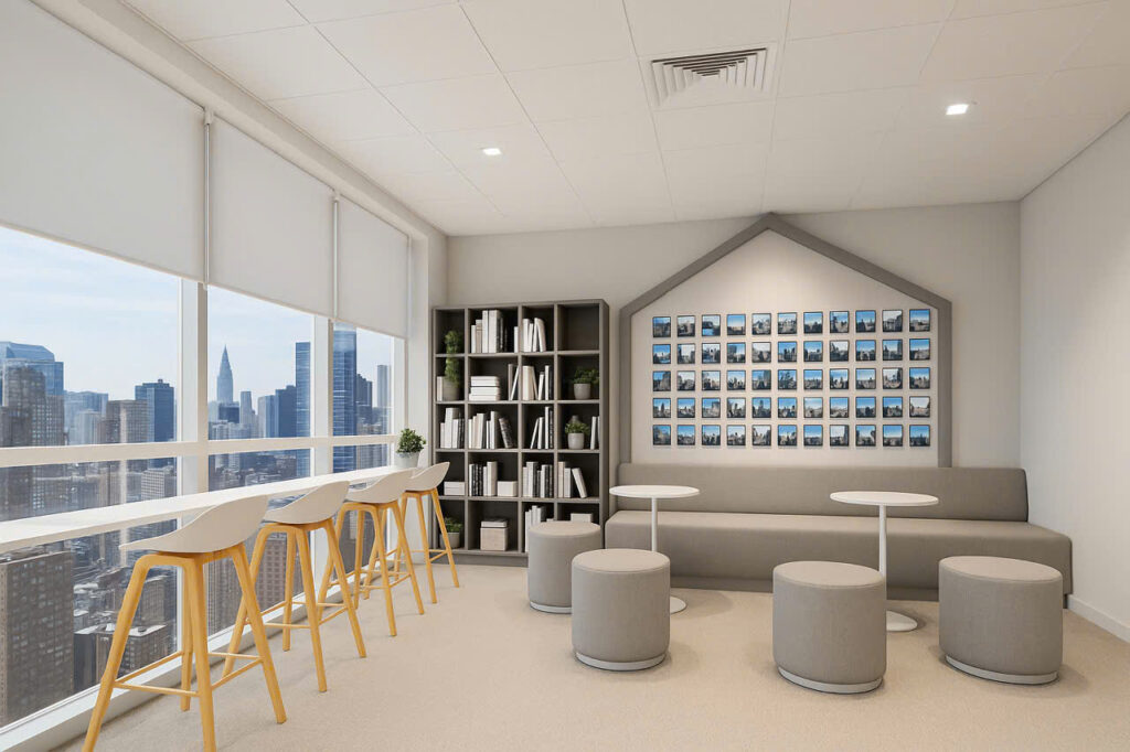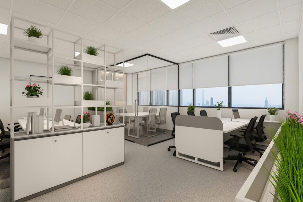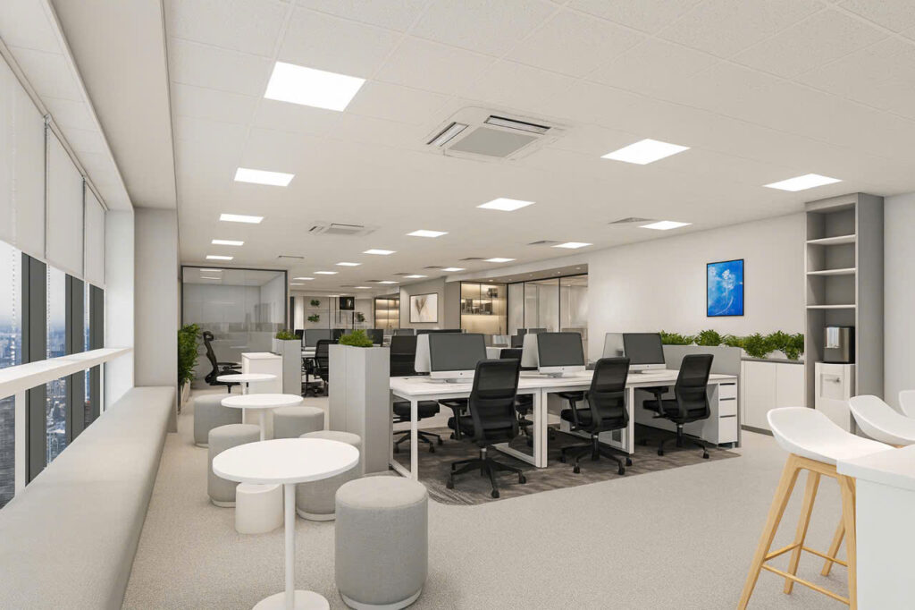 💡 Gợi ý: Kết hợp ánh sáng đa tầng hoặc sơn màu nghệ thuật để tạo hiệu ứng không gian “wow” cho khách hàng và nhân viên.