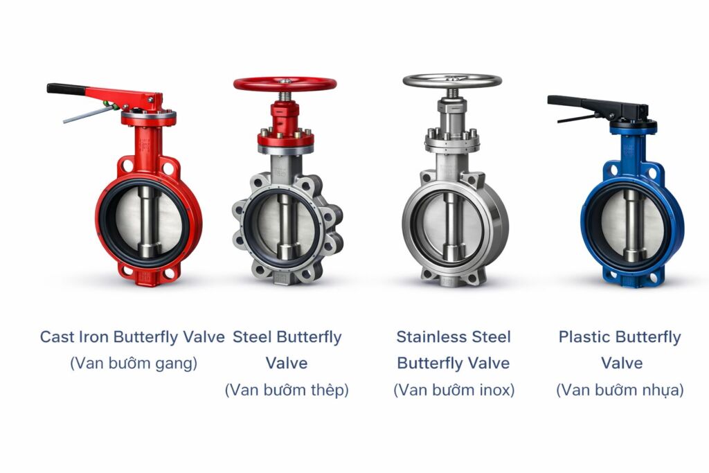 1. Tên tiếng Anh của van bướm theo chất liệu